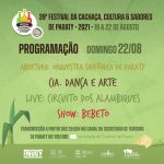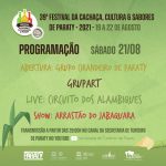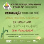 A 39ª edição do Festival da Cachaça, Cultura e Sabores de Paraty, vai acontecer de 19 a 22 de agosto de 2021 em formato online.