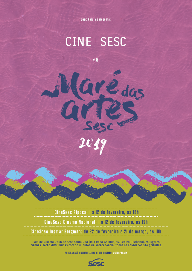 A Mostra CineSesc Cinema Nacional, que acontece de 1 a 12 de fevereiro, às 19h, oferece uma programação montada com filmes nacionais para apresentar a recente produção cinematográfica brasileira. Para finalizar essa maré de filmes, o Sesc Paraty fará uma homenagem ao cineasta Ingmar Bergman. De 22 de fevereiro a 21 de março, o público poderá assistir aos filmes do diretor responsável por grandes ícones não só da sétima arte, mas também da cultura mundial do século 20. O sueco Ingmar Bergman completou, em 2018, 100 anos de seu nascimento. O cineasta é dono de diálogos densos, câmeras que revelam rostos, em especial o das mulheres, e de um estilo inconfundível influenciado pela dramaturgia. Produções como O Sétimo Selo, Morangos Silvestres, Face a Face, Vergonha e Persona fazem parte de sua filmografia e serão exibidos gratuitamente no Maré das Artes 2019.