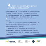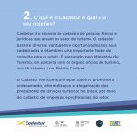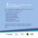 O cadastramento é gratuito e tem validade de 02 anos para pessoas jurídicas e 05 anos para guias de turismo. Todos os prestadores cadastrados garantem acesso à uma série de vantagens! Para realizar o seu cadastro, acesse www.cadastur.turismo.gov.bre contribua para um turismo legal.